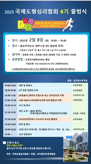 ♣ 국제도형심리협회 - 신년회 & 6기 출범식 ♣ 지오피아 도형심리 수료하신분을 참석신청할수있으니 많은 분들 오셔서 뵐수있기를 기대합니다